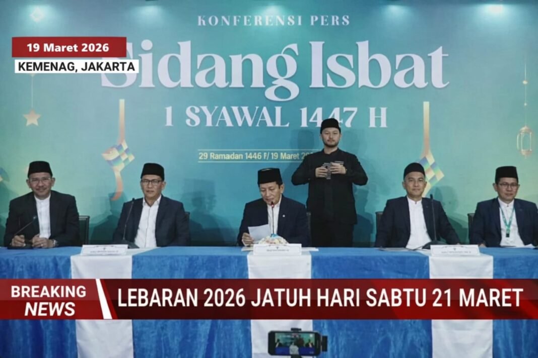 “Berdasarkan hasil pengamatan hilal dan perhitungan yang ada, disepakati bahwa 1 Syawal 1447 H jatuh pada Sabtu, 21 Maret 2026,” demikian disampaikan dalam konferensi pers penetapan.
