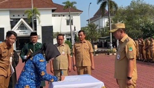 KARAWANG | KARAWANGEXPOSE.COM – Bupati Karawang H. Aep Syaepuloh secara resmi melantik dan mengambil sumpah Aparatur Sipil Negara (ASN) sekaligus menyerahkan SK pengangkatan PPPK Formasi 2024 Tahap II serta SK CPNS yang diangkat menjadi PNS. Acara pelantikan digelar di Plaza Pemda Karawang pada Senin (22/9/2025).