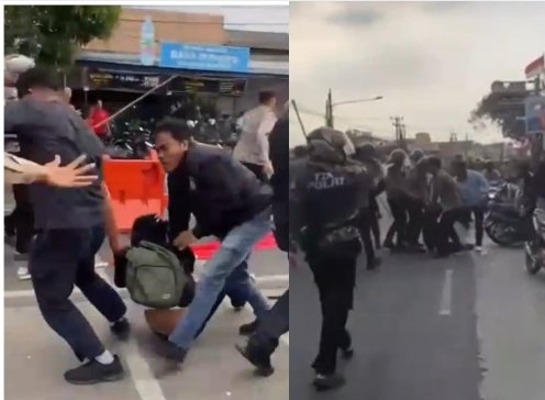 Kericuhan pecah saat aparat menembakkan gas air mata ke arah massa dalam upaya membubarkan kerumunan. Karena pagar Mapolres Karawang roboh.