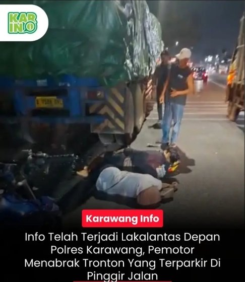 KARAWANG | KARAWANGEXPOSE.COM | Kecelakaan lalu lintas kembali memakan korban di Karawang. Dua pengendara motor menabrak truk tronton yang terparkir di pinggir Jalan Surotokunto No.110, tepat di depan Mapolres Karawang, Kelurahan Warungbambu, Kecamatan Karawang Timur, Senin (29/9/2025).