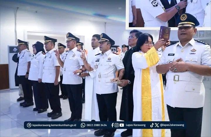 Dalam rangkaian acara, turut dilaksanakan prosesi serah terima jabatan dari Kepala Lapas Kelas IIA Karawang sebelumnya, Christo Toar, kepada Ma’ruf Prasetyo. Momentum ini menjadi simbol estafet kepemimpinan yang diharapkan mampu membawa Lapas Karawang semakin maju dan profesional.